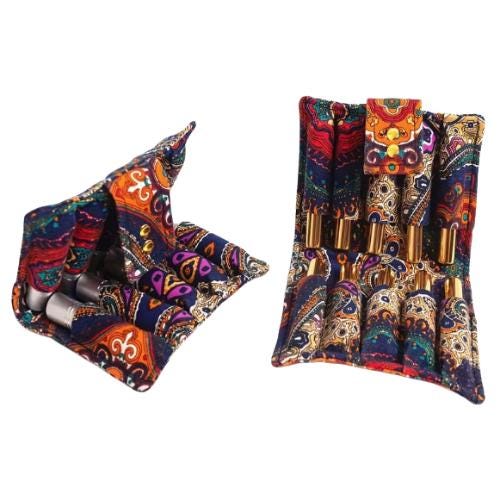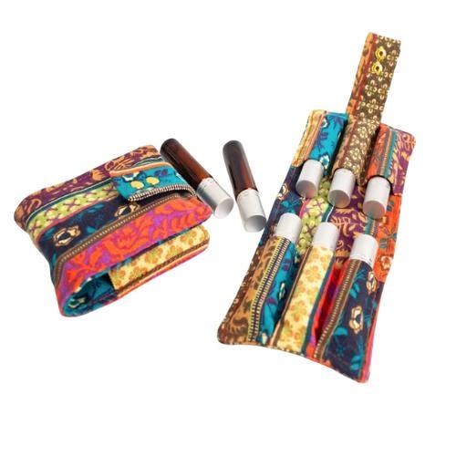 This organizer is the perfect blend of beauty and practicality. Whether you work with our oils for ritual, wellness, or everyday self-care, this pouch keeps your favorite blends safe, protected, and easy to find. The soft padding cushions your rollerballs, while the vibrant, boho fabrics bring a touch of personality and magic to your routine. It folds neatly into a compact shape that fits effortlessly into your purse, travel bag, or bedside drawer.