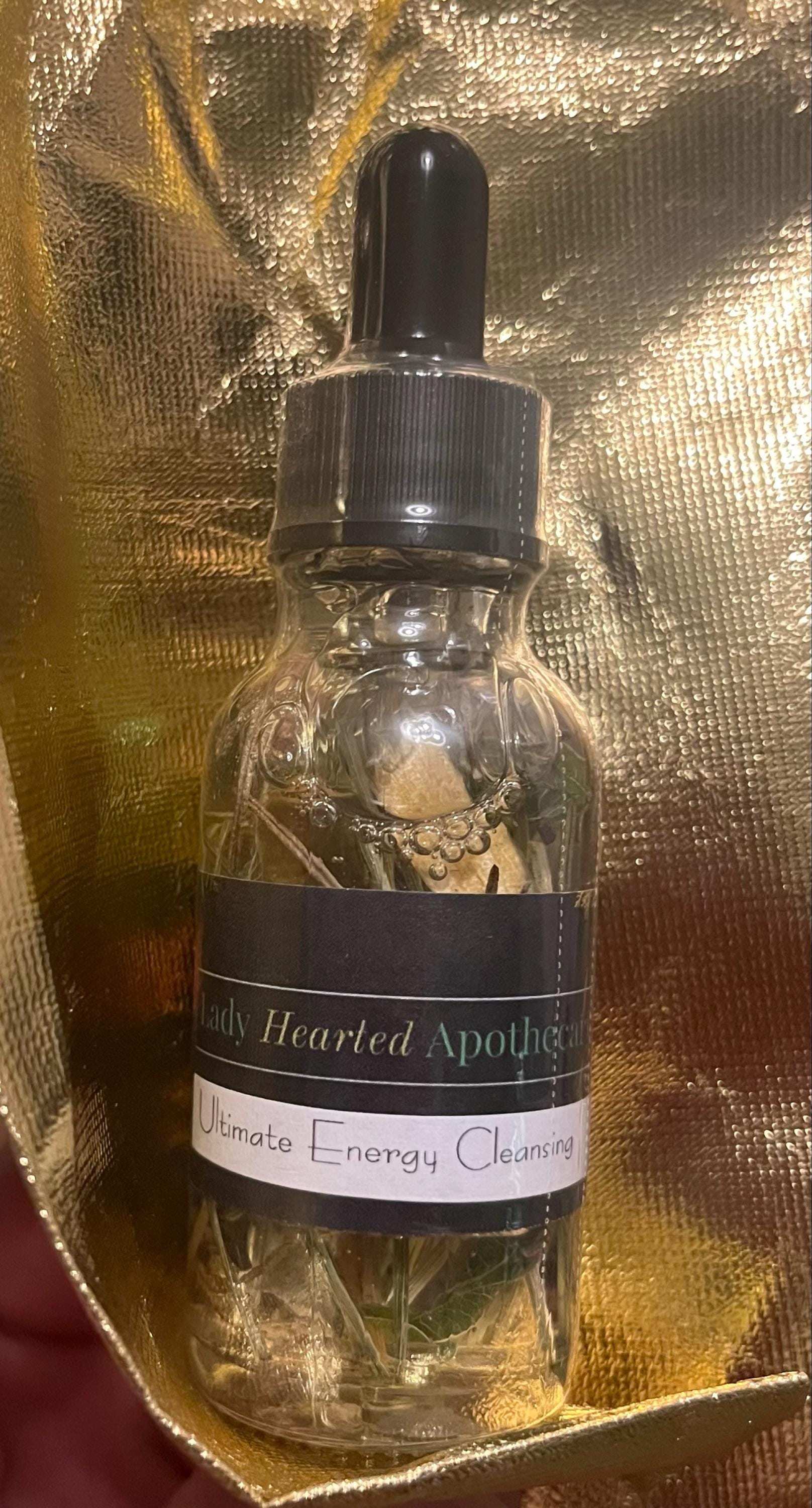 Our Ultimate Energy Cleansing ritual oil can be used to rid yourself — or your space — of negativity. This includes past traumas, bad experiences, or negative energies from others to help you establish a positive environment for meditation or another ritual. Choosing to sit and let go of negative thoughts in a ritual like this sets your intention and dedication to self-improvement. This oil has been charged and filled with Palo Santo, White Sage & Desert Sage and other spiritual herbs. This oil has been charged with energy and intent to match the oils properties.