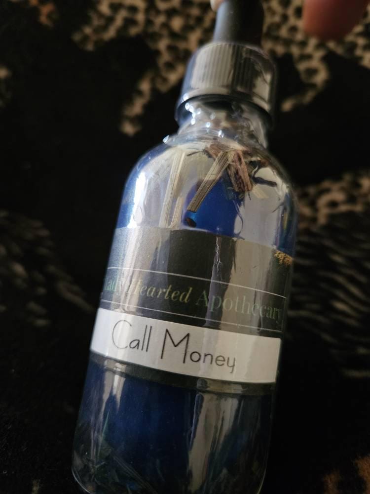 Experience the magic of financial abundance with our Call Money Ritual Oil, a meticulously crafted and consecrated blend of essential oils, herbs, and enchanting ingredients designed to invoke prosperity and wealth into your life. This potent oil is a cornerstone in various mystical and esoteric practices, helping you align with the energies of affluence and financial success. This oil contains several money drawing ingredients including green aventurine, bay leaves, actual shredded US Treasury money and more.